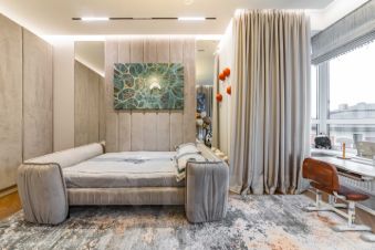 На втором этаже находится мастерспальня с собственным санузлом и гардеробной, общий санузел и две спальни.