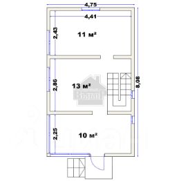 На 1-м этаже прихожая зона 10 кв. м. и две комнаты - 13 и 11 кв. м.