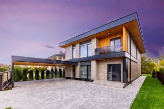 На участке предусмотрен навес на 2 автомобиля. Удачная планировка позволяет разместиться большой семье: 4 спальни и 4 санузла обеспечат комфорт для всех. Одна из спален находится на первом этаже, что удобно для гостей или пожилых родственников.