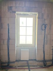 Сделана современная разводка электрики и сантехники, гидроизоляция под бассейн, установлены качественные деревянные стеклопакеты и много др