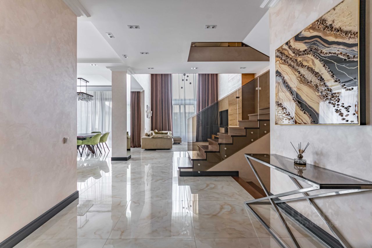 Этот великолепный дом, наполненный светом и воздухом, станет идеальным местом для вашей семьи. С высокими потолками и панорамными окнами, он грамотно спланирован с ориентацией по сторонам света. Стиль современная классика гармонично сочетается с декоративной штукатуркой на стенах и двух- и трёхуровневыми потолками. На полу керамогранит и инженерная доска из американского ореха, а дубовая лестница с перилами из закалённого стекла добавляет изысканности. В доме установлен биокамин, который создаёт уютную атмосферу.