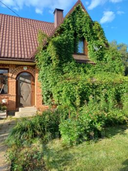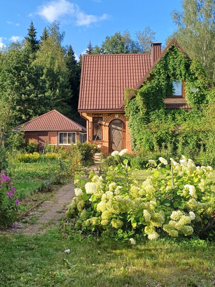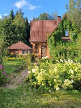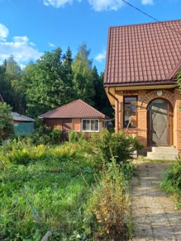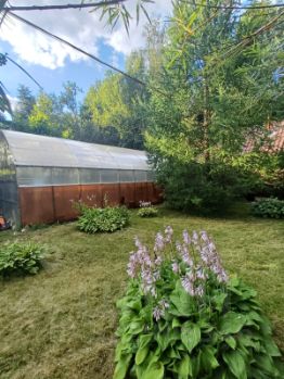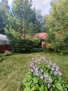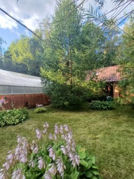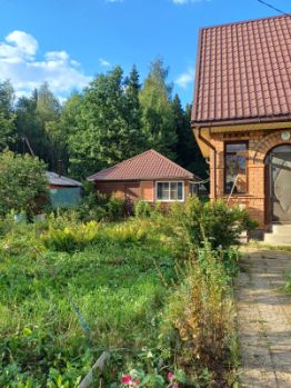 На участке 14 соток сельскохозяйственного назначения для садоводства с собственной калиткой в лес расположены: двухэтажный кирпичный дом площадью 55 кв.м, баня из строганого бруса площадью 26 кв.м, уютная беседка площадью 40 кв.м полностью закрытая с остеклением, закрытый бассейн, стационарная теплица, уличный душ и хозблок, стоянка на три автомашины. На участке выполнены ландшафтные работы.