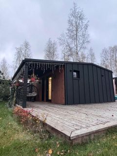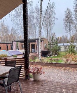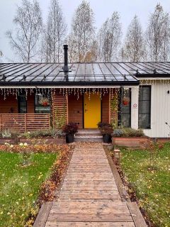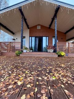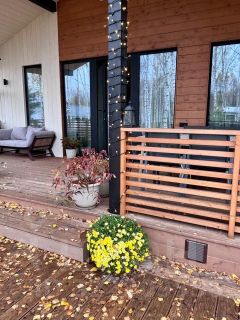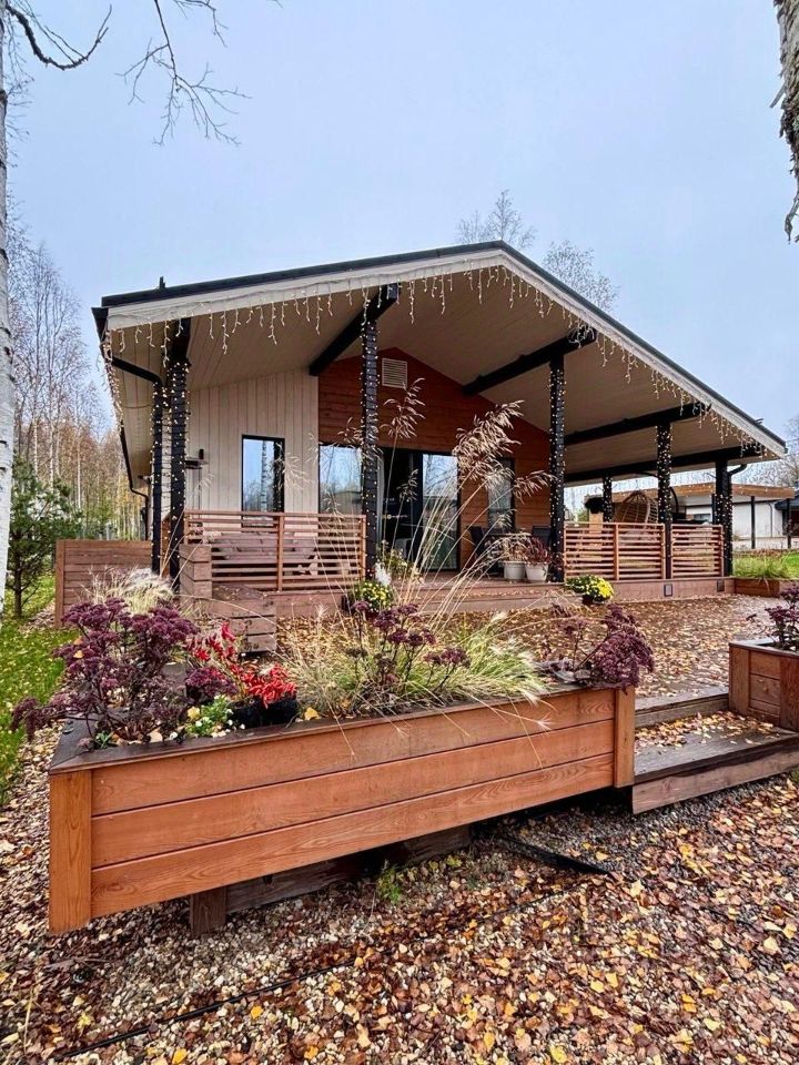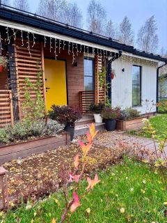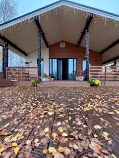 — уютного одноэтажного дома площадью 136 кв м с деревянными террасами и дорожками