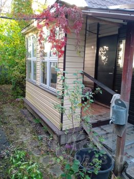 Двухэтажный хозблок (летняя кухня) 9 кв. м. с дровником. На втором этаже комната 6 кв. м. Отделан сайдингом.