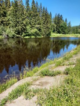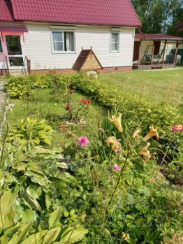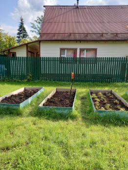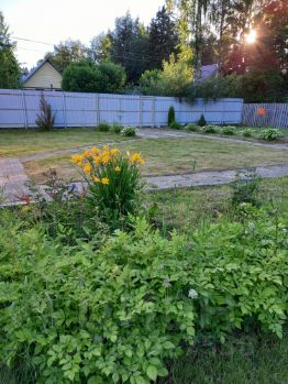 Дом разм. 6х6 с пристройкой 2х6, 2-х этажный из бруса 15на15, фундамент ленточный, строили белорусы. В пристройке терраса, прихожая, санузел, в доме кухня 18м2 и две спальни по 9м2, печь. На втором этаже корридор и две спальни по 12м2, на окнах и входной двери рольставни, в спальнях деревянные кровати и комоды из сосны. Есть шикарная баня- гостевой дом разм. 44м2 из бруса 15см на 15см, ленточный фундамент.В бане полукруглая терасса 12м2 с полом из плитки, комната отдыха 20м2, душевая 6м2 и парилка 6м2. В душевой все в плитке, полы с подогревом, в комнате ламинат, есть чердачный этаж. Баня построена в 2012 белорусами, состояние отличное. Два дома обшиты сайдингом. Есть хоз блок с двумя помещениями с открытой верандой, обшит сайдингом а также дровник. На участке колодец, вода от него подведена к бане. Участок ухоженный, в основном газон, разбит на зоны: монгальная ( площадка из плит,монгал) зона отдыха (площадка из плит, лавочка), стоянка для авто ( площадка из плит), зона для грядок 6шт. Есть две молодые яблони, ремонтантная малина, черная и красная смородина, ростут цветы: розы, гортензии метельчатые,клематис, пионы, астильба, флоксы, лилейник и др. Участок прямоугольный, соседи хорошие. До участка можно дойти пешком по асфальтированной дорожке от ст. Театральной белорусского направления за 15мин. Рядом в 15 минутах находится пруд на территории спортивного лагеря, там можно купаться. Вокруг участка лес, очень красивое место.