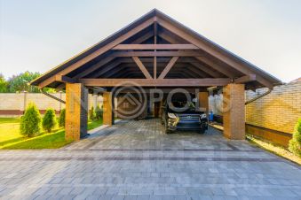 Участок огорожен кирпичный забором с автоматическими откатными воротами.