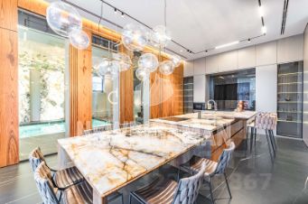 ЛОТ 82355 ЕС Продажа загородного дома общей площадью 745 кв.м. Новорижское шоссе, 18 км от МКАД. Коттеджный поселок Ренессанс парк. Дом построен в 2 этажа, под ключ. Интерьер и декор продуман до мелочей оформлен с применением премиальных материалов и брендов. Мебель: португальская Frato и итальянская Henge. Сантехника: итальянские бренды CEA и Antonio Lupi. Освещение: люстры и светильники от компании ЦентрСвет и итальянских брендов. Для столешницы кухни, отделки бассейна и санузла выбран благородный кварцит — элитный натуральный камень. Дом оснащен современной бытовой техникой премиум-класса: 9 телевизоров Samsung, расположенные в каждой комнате дома. Техника немецкой марки Bosch на кухне и в бытовых зонах. Отопление разведено трубопроводами из сшитого полиэтилена, установлены котлы Viessmann, конвекторы Vitron, стальные дизайнерские радиаторы Whsteel. Индивидуальная настройка температуры полов и радиаторов позволяет поддерживать оптимальную температуру в каждом помещении индивидуально. Встроенная система кондиционирования с кондиционерами Mitsubishi обеспечивает комфортный микроклимат. Уличная кухня оснащена качественной техникой Bosch и грилем Napoleon, позволяя наслаждаться приготовлением пищи на свежем воздухе. Большая красивая удобная барбекю зона с холодильником, посудомоечной машиной и грилем. Навес на три автомобиля. Обустроенный участок площадью 23 сотки.