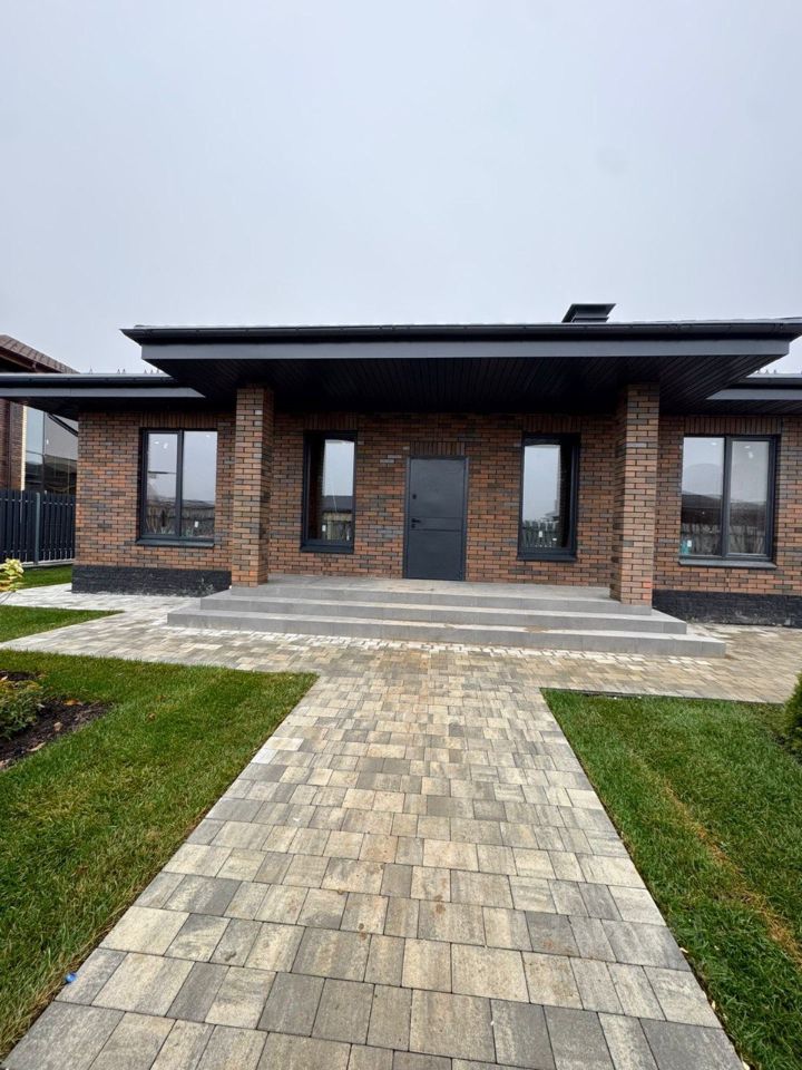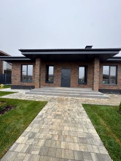 Фундамент дома забивные 4 метровые сваи и монолитный ростверк ж/б, перекрытие ж/б плиты. Стены из керамического блока поротерм 44, облицовочный кирпич Braer. Кровля выполнена из мягкой черепицы, утеплена минерально-ватным утеплителем 200 мм. Качественные окна 70 мм профиля. По периметру дома дренаж и установлен колодец, есть септик. Электричество и интернет заведены в дом. Выполнено мощение дорожно-тропиночной сети, в том числе и парковочная зона на два автомобиля, а также благоустройство и озеленение участка. Уложен рулонный газон с соблюдением технологии, высажена новогодняя ель и декоративно-цветущие растения. При покупке дома проект бани в подарок!