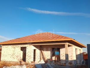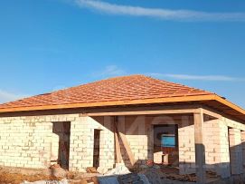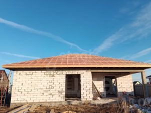 Одноэтажный блочный дом современной постройки площадью 160 кв. м предлагает рациональную и комфортную планировку для постоянного проживания.
