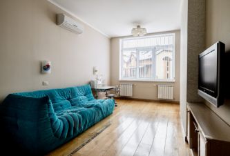 Ремонт: выполненный дорогими импортными материалами, частичная шумоизоляция стен. Монолитная лестница, обшита износостойкой породой дерева. Высокие потолки (3,5 метра). Везде где плитка теплый пол, водяное отопление, на всех этажах во всех комнатах установлены кондиционеры. Кухня, со всей бытовой техникой.