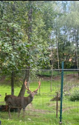 Участок: облагорожен (ели, куст смородины, цветы, газон, каменная плитка), есть мангал и летний домик рядом с ним.
