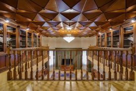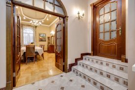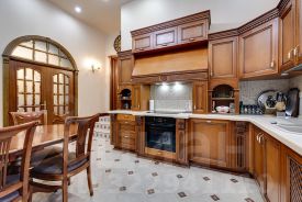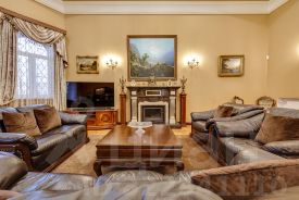 • Парадный этаж: Вас встречает каминный зал, объединенный с гостиной и столовой, просторная кухня, кабинет, спальня. Сердце дома — библиотека на два этажа, создающая неповторимую интеллектуальную атмосферу.