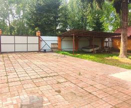 Площадь участка 12 соток. На участке плодово-ягодные, декоративные и лесные деревья и кустарники. На участке уложен травяной газон. Участок огорожен. На участке расположены: навес на 2 машины, летняя кухня, гостевой дом и гараж.