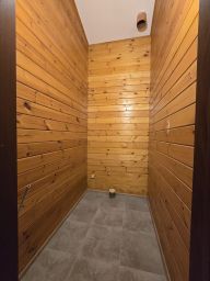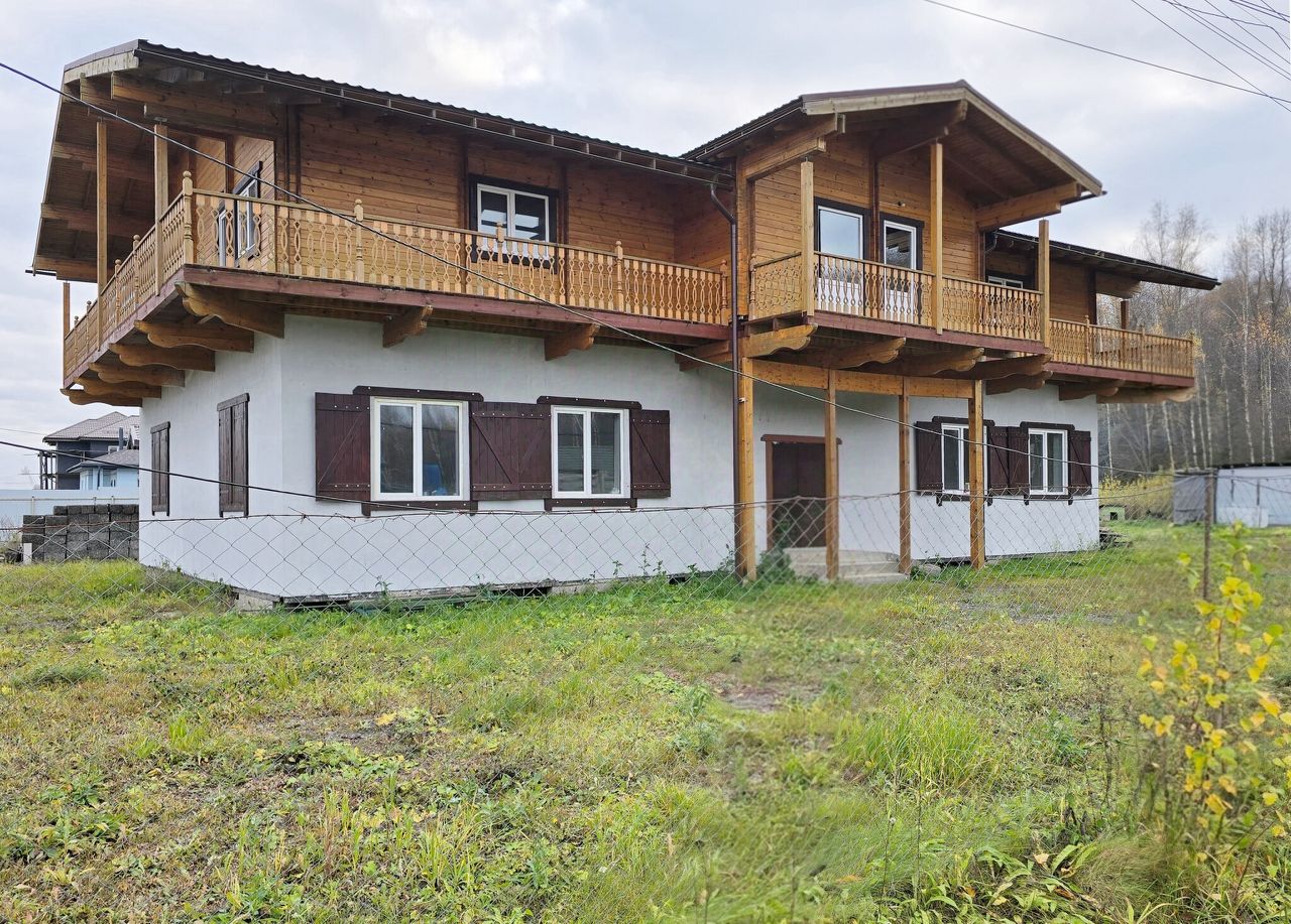 Красивый дом в стиле шале построен на свайном фундаменте с залитой площадкой (сваи винтовые 3,5 метра) из арболитовых блоков (1-й этаж, толщина стены 50 см), снаружи оштукатурен, второй этаж построен по технологии "двойной брус", где эковата задувается в полость между двумя слоями бруса, создавая бесшовный слой теплоизоляции. Деревянная спальня способствует лучшему сну благодаря созданию оптимального микроклимата, звукоизоляции и умиротворяющей атмосфере.
