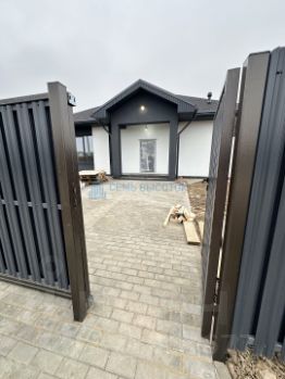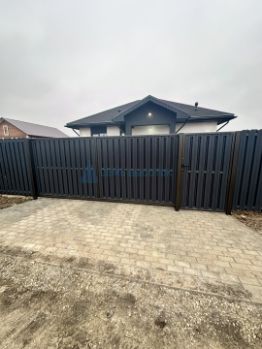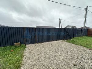 Земля огорожена забором, ОТКАТНЫЕ ВОРОТА, калитка, парковочное место на два автомобиля.