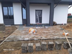 Земля сухая и ровная, с дренажем по участку, выводится отмостка вокруг дома.