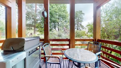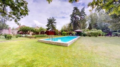 Прекрасный участок 40 соток, с множеством взрослых деревьев, бегают белочки, прекрасный ландшафтный дизайн с зоной отдыха у бассейна, дорожки из натурального камня среди вековых сосен. Игровая площадка, батут, теннисный стол и качели для досуга детей. Есть отличная возможность построить домик на дереве.