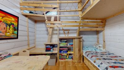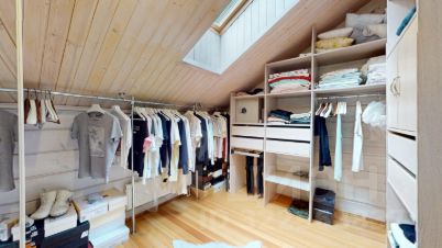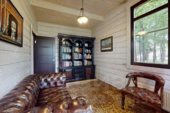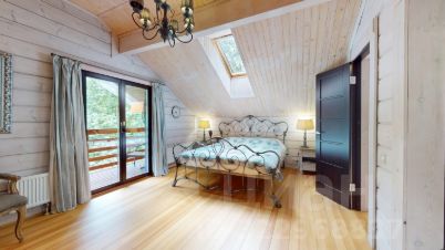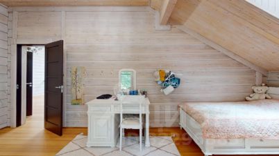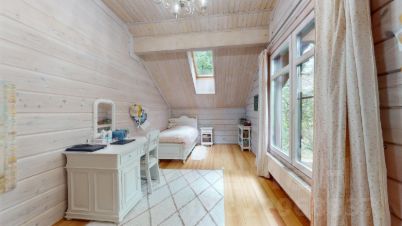 - второй этаж полностью хозяйский: большая гардеробная 8 кв.м, ванная 9 кв.м, две спальни 14,5 и 18 кв.м, одна из которых выполнена детским архитектором Юрием Сырковым, мастер-спальня 19 кв.м с балконом, гардеробной 8 кв.м и ванной комнатой 6 кв.м, есть чердак.