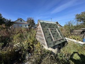 - На участке: Гараж, Баня, колодец, часть дома, плодово-ягодные насаждения, цветы.