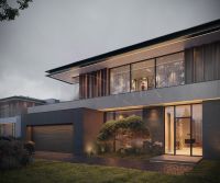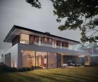 - На первом этаже: кухня-столовая с выходом на террасу, уютная гостиная, кабинет, а также гараж и кладовые для хранения.