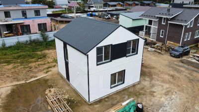 В продаже трендовый двухэтажный дом в скандинавском стиле пл. 90 м кв. на участке 5 от застройщика из пеноблока .