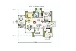 1 этаж: Просторная гардеробная позволит всегда поддерживать порядок, а гостиная-столовая 40 м² с местом для настоящего дровяного камина станет уютным уголком для душевных вечеров. Кухня 12 м² плавно перетекает на террасу 17 м², где вы сможете наслаждаться завтраками на свежем воздухе, любуясь красотами природы. Кабинет/гостевая спальня 16 м² идеально подойдет для работы из дома или приема гостей.