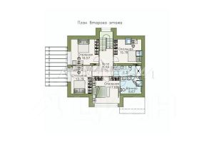 2 этаж: Второй этаж настоящая находка для большой семьи. Здесь просторная мастер-спальня с собственной ванной комнатой, обеспечивающая максимальную приватность. Три дополнительные спальни (14, 16 и 17 м²) позволяют разместить всех членов семьи с комфортом.