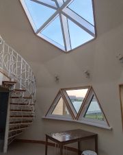 В доме царит превосходная энергетика, за счёт своей сферической формы он светлый и уютный, здесь легко дышится и нет ощущения сдавленности. Очень много свободного пространства.