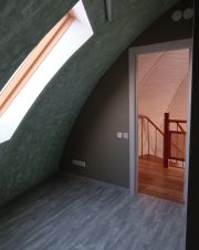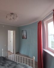 В доме. три уютные комнаты, гостиная, кабинет, кухня-столовая и два вторых света, один из которых — свободное помещение, которое можно использовать по своему усмотрению. Ванная и туалет расположены на первом этаже, а на втором этаже есть душевая, совмещенная с туалетом. Также имеется тамбур, гардероб и два технических помещения. Отопление в доме теплый пол, вода чистая питьевая (скважина 44 метра), а канализация биосептик.
