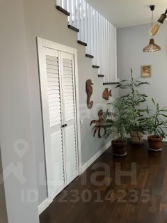1-й этаж: кухня-гостиная с выходом на веранду, камин, две комнаты, гардеробная, санузел с душем, бойлерная, холл, коридор. Теплые полы в санузлах и прихожей. Кухня оборудована бытовой техникой Neff, сантехника Jacob Delafon. На полу дубовый паркет, лестница монолитная, ступени массив дуба. Кухонная мебель финская, массив берёзы.