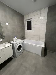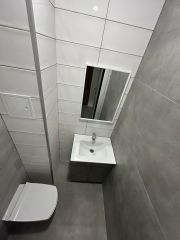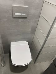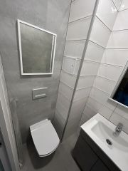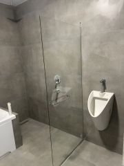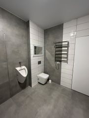 В доме 2 с/у, один гостевой, 2-ой хозяйский. С/у облицованы плиткой, и установлена сантехника. (Ванна, душевая кабина с поддоном в уровень пола, встроенным смесителем и тропическим душем, инсталляции с настенными унитазами и функцией биде, писсуар, большая удобная раковина, смеситель с сенсорным управлением, стиральная машина.