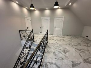 - Первый этаж 85 м²: кухня-гостиная36 м², гостиная с камином, санузел, гардеробная,