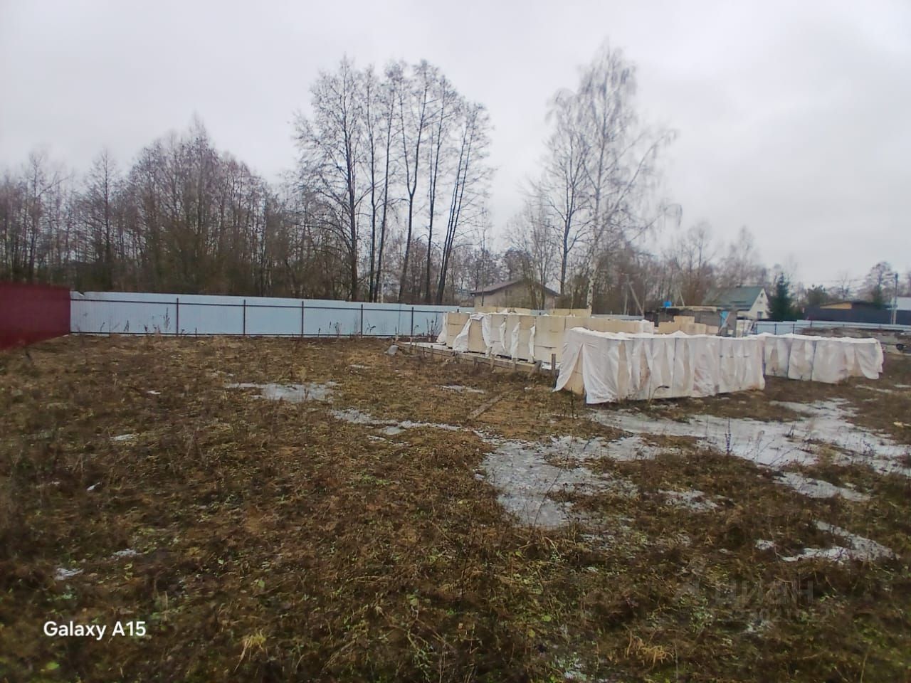 Что уже сделано (полная готовность к стройке): Залит качественный ленточный фундамент. Привезён и готов к строительству газоблок. Подведено электричество. Установлен забор из профнастила по всему периметру.