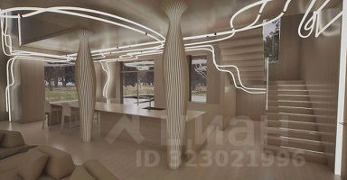 Первый этаж включает рабочую зону с возможностью отдельного входа и личным санузлом. Кухня-гостиная впечатляет своими размерами (90 Кв.м) и функциональностью благодаря двум островам.