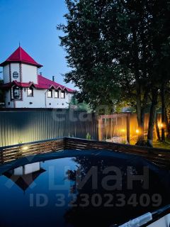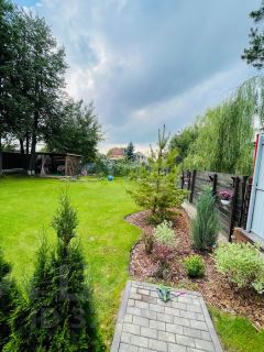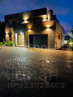 Участок в 10 соток благоустроен: выполнено ландшафтное проектирование с декоративной подсветкой, высажены кустарники и сохранены взрослые деревья, в дальней части обустроена зона барбекю.