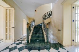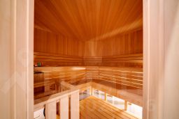 В доме расположены лифт, пронизывающий все 4 этажа, 10-метровый бассейн с гидромассажем, 2 настоящих камина, сауна, 5 спален с личным санузлом, 2 гостевых санузла, санузел при мастер-спальне с душем, джакузи и хаммамом, кухня, рабочий кабинет, бильярдная комната, спортивный зал, лофтовый зал с подиумом, большой балкон на втором уровне, гостиный и обеденный залы.