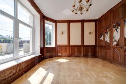 Дом построен в французком стиле голландским архитектором, в исполнении элементов декора принимали участие известные художники. . Строгий, респектабельный дизайн дома удовлетворит самого притязательного ценителя архитектуры и будет актуален во все времена, а продуманная планировка дома разделяет пространство для приема гостей и для личной жизни.