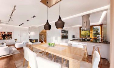 -1 этаж: кухня, гостиная-столовая, кабинет/спальня, санузел, подсобные помещения, гараж на 2 автомобиля;