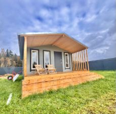 - В перспективе запланировано возведение зоны отдыха у костровой чаши — дополнительные удобства для отдыха и комфортной жизни.