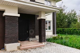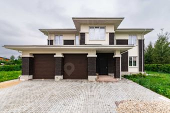 На первом этаже: кухня, столовая, гостиная с выходом на участок, 2 спальни, санузел, котельная, терраса. На втором этаже: гардеробная, 4 спальни, 3 санузла. Новый кирпичный дом построен по проекту Ф.Л. Райта и отлично подходит для большой семьи.