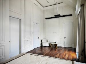 На первом этаже расположена дополнительная спальня для гостей или няни.