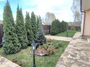 На участке: дом, беседка с мангалом, детская площадка, площадка для надувного бассейна, разбито несколько грядок, парковочные места для 2-х автомобилей, выполнен ландшафтный дизайн.