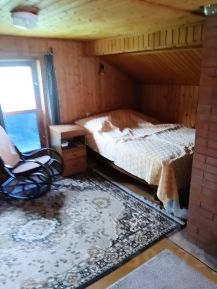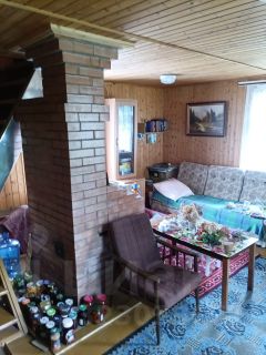 2- х этажный бревенчатый дом 6х9 м 2013 г. постройки, состоящий из гостинной, кухни , с/у, комнаты -1этаж, 2-х спален -2этаж. В доме есть холодная и горячая вода, канализация( септик ), баллонный газ , электричество, отопление электрическое и камин-печь. Отделка везде-вагонка, с/у - пластик.