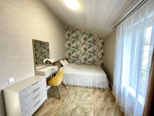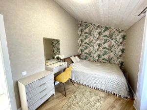 Светлая спальня, рабочий кабинет с дополнительной спальной зоной, санузел с душевой кабиной, бойлерная.