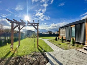 ДОМ 79 кв. м. с шикарной и функциональной планировкой:просторная гостинная-кухня(полностью укомплектованная) с панорамными окнами и выходом на террасу, где обустроена зона отдыха.
