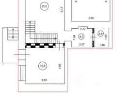 1-й этаж: холл, просторный зал, кухня- гостиная, с/у.