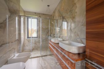 Лот 102974. Эксклюзив Vesco Realty. Коттеджный поселок "Крона" Стильный особняк 870 кв.м на зеленом участке 19 соток в коттеджном поселке КРОНА в 25 км от МКАД по Новорижскому шоссе. В доме: 5 спален, 7 с/у, гостиная, кухня-столовая с выходом на террасу, бассейн, спа-зона, кинотеатр с баром, кабинет, лестничный холл, котельная, постирочная, гардеробная для сезонных вещей, гараж на 2 м/м, подсобные и технические помещения. Особенности: стеклянный лифт на 3 этажа, панорамные окна, второй свет 6,5 м в гостиной, бассейн (7*3 м глубиной 1,5 м, с подогревом, подсветкой и противотоком), спа-зона (джакузи, сауна, хамам, душ впечатлений и гидромассажная ванна на 4 человека), стеклянный купол в бассейне, мастер-этаж с двумя спальнями, бетонный бункер (сейфовая комната паник-рум с бронедверью, вентиляцией и интернетом). ПЛАНИРОВКА 1 этаж: Крыльцо (14,6), прихожая (11,3), гардеробная (3,8), лестничный холл (31,2), гостиная (38,9), кухня (50,6) с выходом на террасу (53,8), бассейн (7*3 м), гостевой с/у (6,6), гараж (40,7). Гостевая спальня (23,1). 2 этаж: Мастер-спальня 1 (37,3) с гардеробной (14,6) и ванной комнатой (6,7). Мастер-спальня 2 (22,9) с ванной комнатой (11,3). Хобби-комната (37,5) с с/у (2,8). Холл со вторым светом (33). Мансардный этаж: Детская 1 (32,4) с гардеробной (11,5). Детская 2 (41,1) с гардеробной (11,2). Детская ванная комната (7,2), лестничный холл (11,1). Цоколь: Спа-зона (24,5) с джакузи, сауна (5,4), хаммам (6,8), с/у (3,1). Кабинет (23,9) с бункером (4,6), кинотеатр (42,4) с баром (14,2). Лестничный холл (47,3), гардеробная для сезонных вещей (14), постирочная (13,5), котельная (13,5), тех.помещение бассейна (19,8), кладовая (7), комната хранения (20). УЧАСТОК Участок 19 соток с дизайнерским ландшафтом. Организован автополив, выполнена подсветка, уложен газон. Вся отмостка и въездная группа (850 кв.м) - с подогревом. По периметру высажен плотный ряд туй. На участке - большая беседка с барбекю-зоной, диванной группой, обеденным столом на 6-8 персон, дизайнерской дровницей. МАТЕРИАЛЫ и БРЕНДЫ Фасад - керамогранит Окна, двери входные - Alutech Окна - теплый алюминий, стеклопакеты, бронепленка Кровля - гибкая черепица Цоколь - натуральный камень Гаражные ворота - Hormann Полы - паркет, наливной мрамор Мебель Zonta Сантехника Toto, Laufen, Villeroy Boch, Hansgrohe, Tese Техника Neff, Bosch, Samsung Бассейн композитный Franmer Стеклянный лифт M-SYSTEM КОММУНИКАЦИИ и ИНЖЕНЕРИЯ Электричество 100 кВт + дизельгенератор 30 кВт Магистральный газ Водоснабжение центральное + своя скважина 77 м Канализация центральная Котельная - на меди, оборудование Vaillant Водоподготовка Приточно-вытяжная вентиляция, рекуператоры Кондиционеры скрытого типа Теплые полы, стены, подоконники ПОСЕЛОК КП "Крона" находится в 25 км от Москвы по бессветофорному Новорижскому шоссе. Остановка автобусов находится в 100 метрах от КПП поселка. Крона - один из старейших поселков Московской области. На его территории в 25 га оборудованы детская площадка, прогулочные зоны, теннисный корт и футбольное поле с трибунами. Поселок граничит с березовой рощей. Въезд на территорию поселка осуществляется через охраняемую КПП. Безопасность жителей обеспечивается круглосуточной профессиональной охраной и патрулированием территории. В пешей доступности находится набережная реки Истры у корпоративного Университета Сбербанка и пансионат Лужки с богатой инфраструктурой (ледовый дворец, горнолыжный и спортивный комплексы, спа, ресторан). Внешняя инфраструктура для детей: досуговые цент