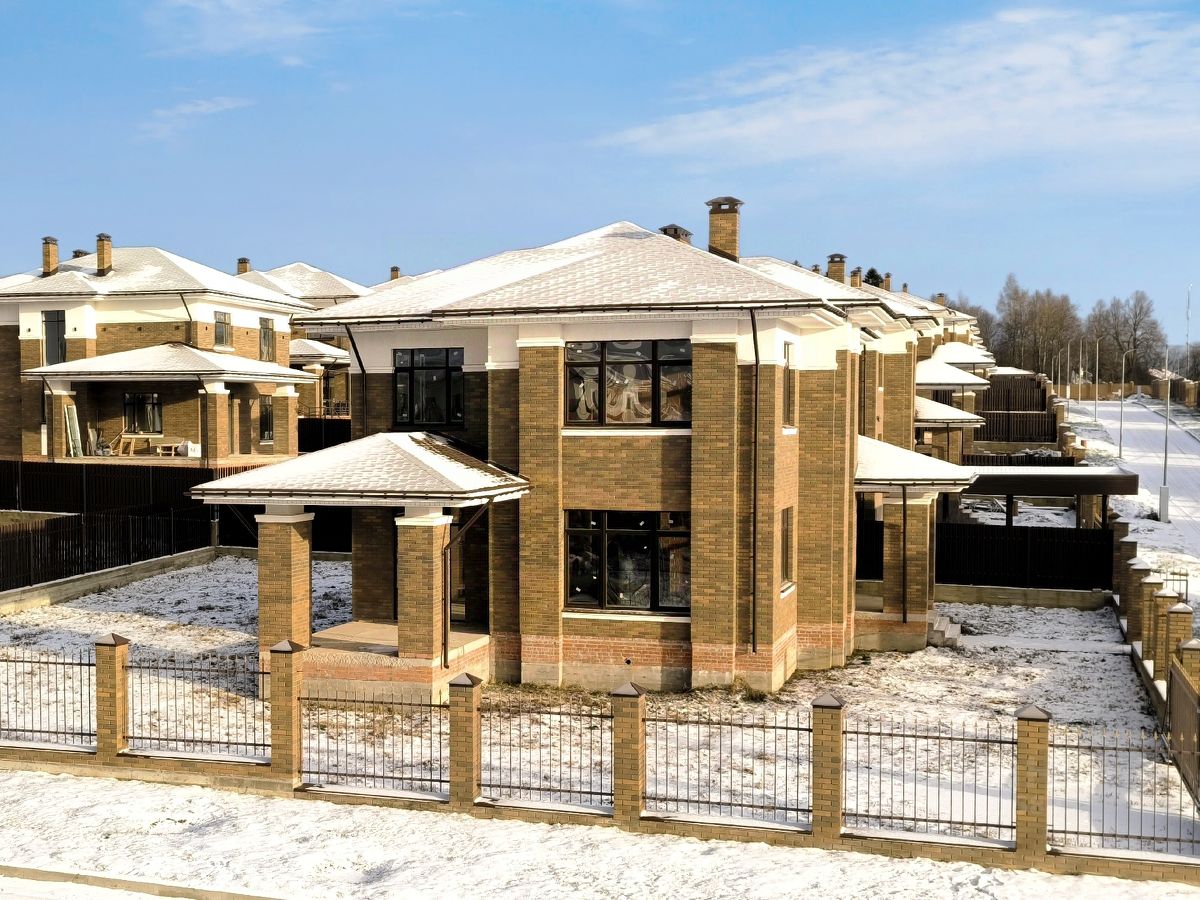 Готовый коттедж 220 кв.м. на участке 8 сот в жилом поселке бизнес-класса "Монреаль". Построен из материалов высокого качества: монолитный фундамент; внешние стены - термоэффективный керамический блок, фасад выполнен из облицовочного кирпича Браер (Баварская кладка) с элементами штукатурки и декора; перегородки кирпич, крыша мягкая кровля, ламинированные стеклопакеты Rehau; залита монолитная лестница; установлена входная дверь с терморазрывом; высота потолков 1-го и 2-го этажа 3.5 м.; залита монолитная дорожка к дому . Коттедж подключен к центральным коммуникациям (газопровод, электроснабжение 15 кВт, водоснабжение, водоотведение, высокоскоростной интернет). Построен забор в едином стиле с калиткой и откатными воротами.