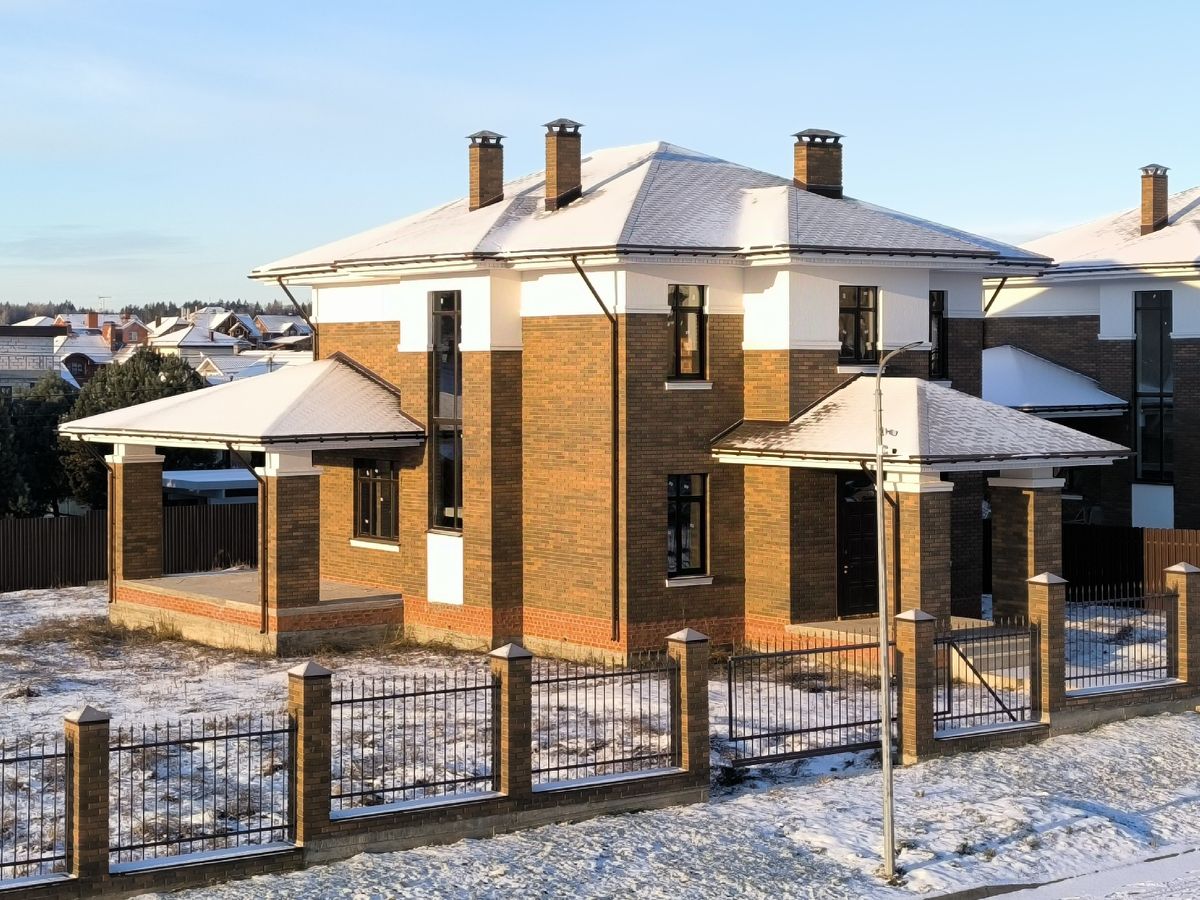 Готовый коттедж 260 кв.м. на участке 8 сот в жилом поселке бизнес-класса "Монреаль". Построен из материалов высокого качества: монолитный фундамент; внешние стены - термоэффективный керамический блок, фасад выполнен из облицовочного кирпича Браер (Баварская кладка) с элементами штукатурки и декора; перегородки кирпич, крыша мягкая кровля, ламинированные стеклопакеты Rehau; залита монолитная лестница; установлена входная дверь с терморазрывом; высота потолков 1-го и 2-го этажа 3.5 м.; залита монолитная дорожка к дому. Коттедж подключен к центральным коммуникациям (газопровод, электроснабжение 15 кВт, водоснабжение, водоотведение, высокоскоростной интернет). Построен забор в едином стиле с калиткой и откатными воротами.