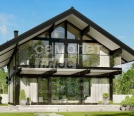 Фахверк, из высококачественной экспортной древесины. энергосберегающие панорамные стеклопакеты, отделка фасада камнем.